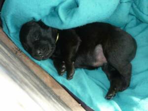 11/07/09 - The puppies are eating mash and nursing every 5 hours now and even tried a snack of dry food. They are really got the hang of paper training even when they are outside their box. The puppies went outside today for the first time - they were a little nervous at first.